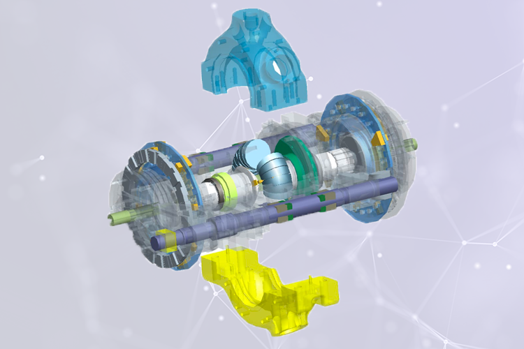 This CAD model animation depicts operation of exhaust valve, its drive chain and fuel injection.